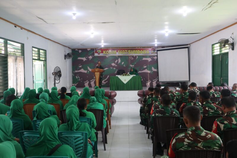 Sumbawa, NTB — Melalui kegiatan Jam Komandan, Komandan Kodim (Dandim) 1607/Sumbawa Letkol Kav Basofi Cahyowibowo, S.T., memberikan pengarahan kepada seluruh anggota militer, PNS, serta Persit Kartika Chandra Kirana (KCK) Cabang XXVI Dim 1607/Sumbawa. Kegiatan tersebut berlangsung di Aula Parikesit Makodim 1607/Sumbawa, Rabu (17/12/2025).