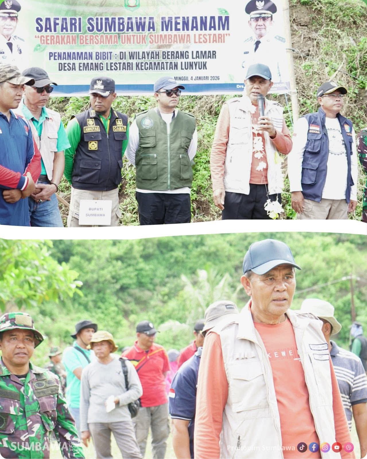 Sumbawa Besar – Lunyuk, oposisinews86.com, (4 Januari 2026) — Bupati Sumbawa, Ir. H. Syarafuddin Jarot, M.P., memimpin langsung kegiatan Safari Menanam yang digelar di Kecamatan Lunyuk, Minggu pagi. Kegiatan ini menjadi momentum penting dalam upaya pelestarian lingkungan sekaligus penegasan komitmen Pemerintah Kabupaten Sumbawa dalam menjaga kelestarian hutan dan sumber daya alam.