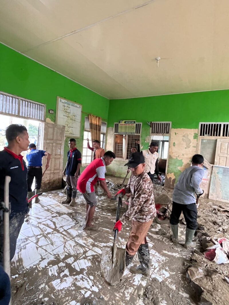 Saat ditunggu percepatan pemulihan, justru tenaga kesehatan lintas puskesmas yang turun langsung membersihkan sisa bencana.
