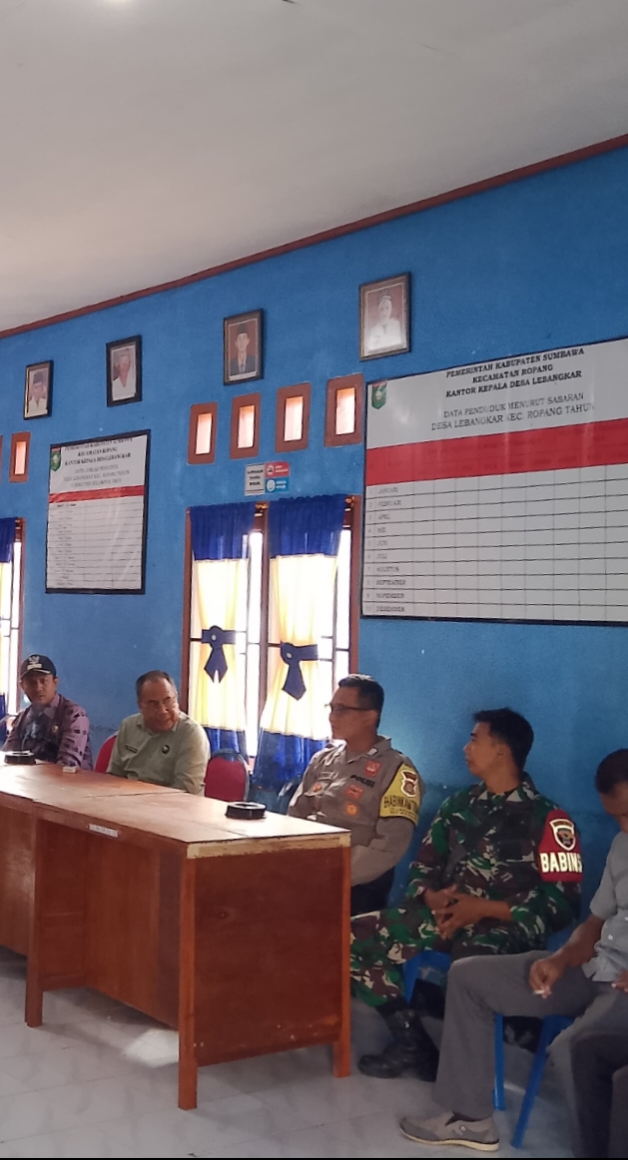 Ropang, Sumbawa — Babinsa Desa Lebangkar Koramil 1607-03/Ropang, Koptu Yudha, turut berperan aktif dalam kegiatan administrasi penetapan dan penegasan batas wilayah Desa Lebangkar yang berlangsung di Kantor Desa Lebangkar, Kecamatan Ropang, Jumat (09/01/2026).