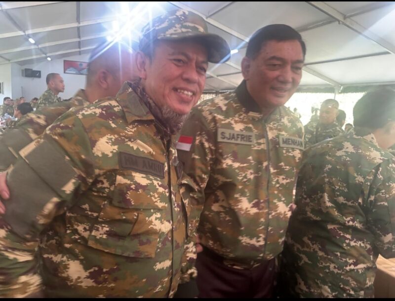 H. Muhammad Amru saat foto bersama dengan Menhan RI Jenderal TNI Safrie Sjamsoeddin di Pusdiklat Bela Negara Bogor.