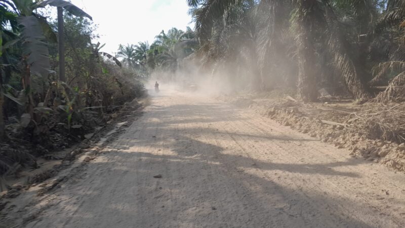 Ruas ini merupakan akses utama mobilitas masyarakat. Namun hingga kini, belum terlihat langkah terukur dari instansi terkait—tidak ada penyiraman berkala, tidak ada pembersihan total material lumpur, apalagi perbaikan badan jalan agar debu tak kembali menjadi ancaman saat cuaca panas.