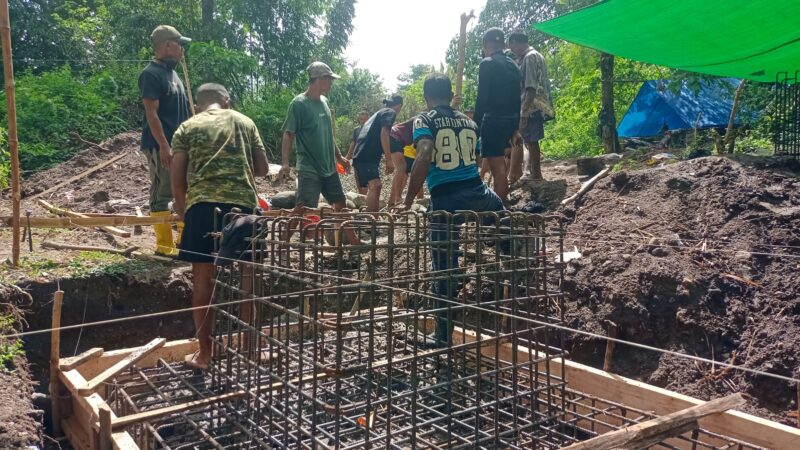Pekerjaan tersebut dilaksanakan secara gotong royong dengan melibatkan personel TNI bersama masyarakat. Tahapan pengecoran ini menjadi langkah penting dalam memperkuat struktur dasar jembatan gantung yang direncanakan memiliki panjang 60 meter.
