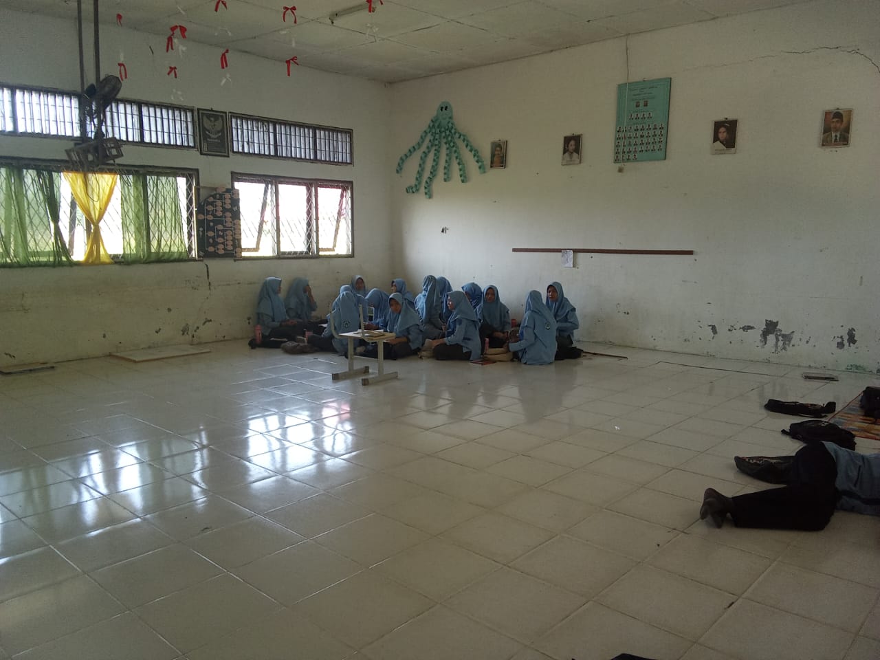 Pantauan Kamis (23/4/2026) memperlihatkan proses belajar berlangsung dalam kondisi minim sarana. Di dua ruangan, siswa terpaksa lesehan selama jam pelajaran. Kontras dengan itu, kelas lain berjalan normal dengan perlengkapan yang tersedia.