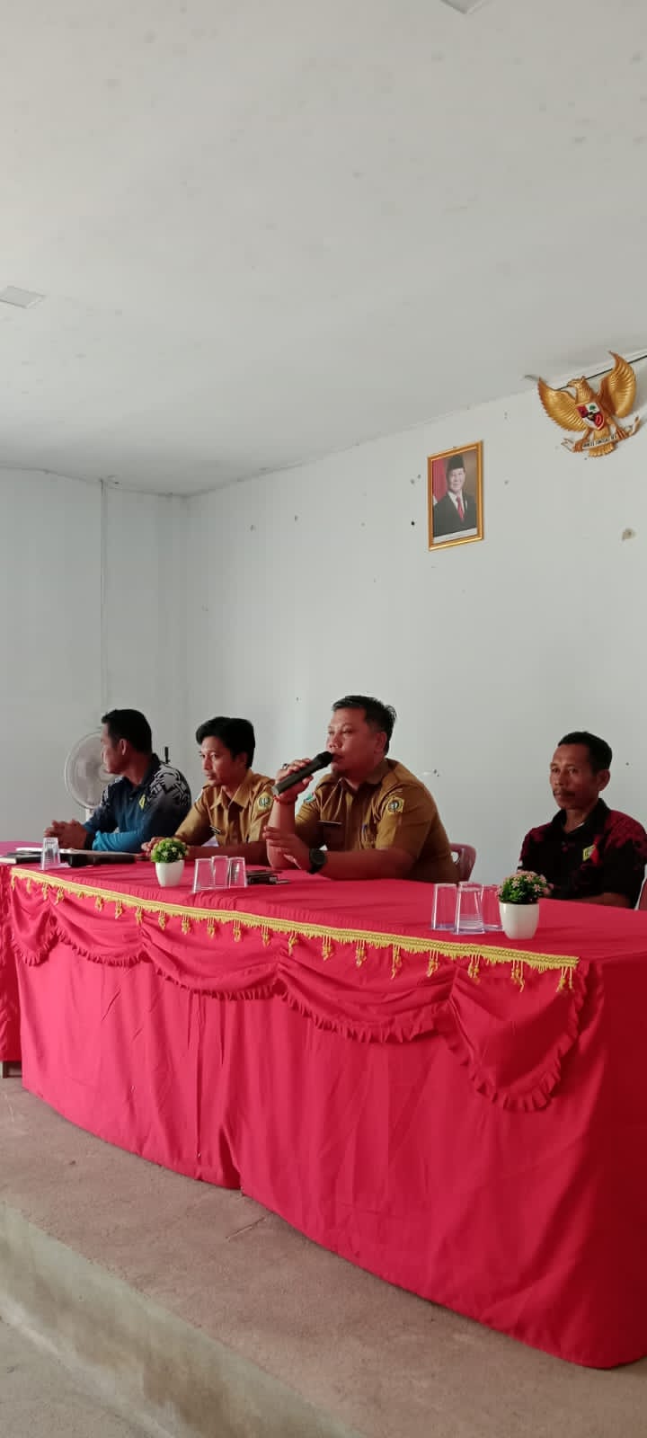 Acara penyerahan BLT di desa perayun di hadiri PLT kades prayun,BPD ketua dan sekretaris, LPMD, tokoh masyarakat dan masyarakat lainya. [Sajirun.S]