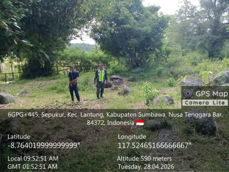 Lantung, Sumbawa — Dalam rangka memastikan kesiapan sarana pendukung program MBG (Makan Bergizi Gratis), Danramil 1607-03/Ropang, Kapten Inf Lalu M. Said melaksanakan peninjauan langsung ke lokasi pembangunan dapur MBG di Desa Padesa, Kecamatan Lantung, Selasa (28/04/2026).