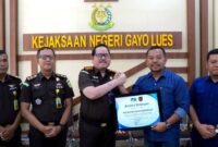 Direktur Utama Prumda Tirta Sejuk Ricy Udayana SE, I didampingi Wakilnya Prima, berikan penghargaan kepada Kajari Gayo Lues. Gayo Lues – Jaksa Pengacara Negara…