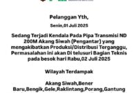 Pengumuman: PERUSAHAAN UMUM DAERAH AIR MINUM TIRTA SEJUK KABUPATEN GAYO LUES Pengumuman Pelanggan Senin, 01 Juli 2025 Yth. Pelanggan Perumda Air Minum Tirta Sejuk…